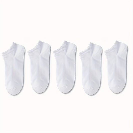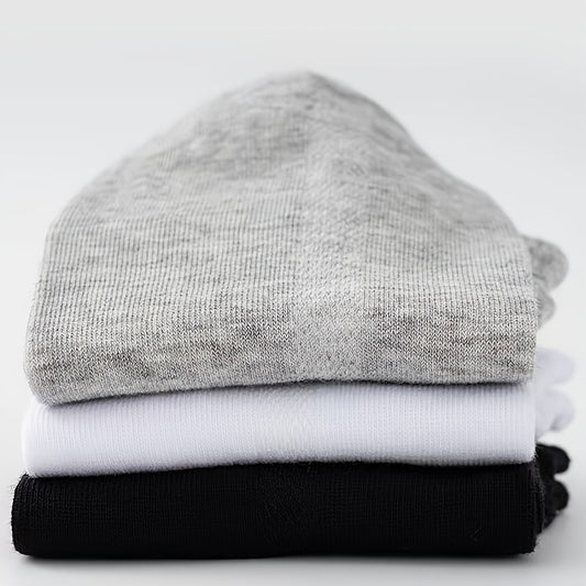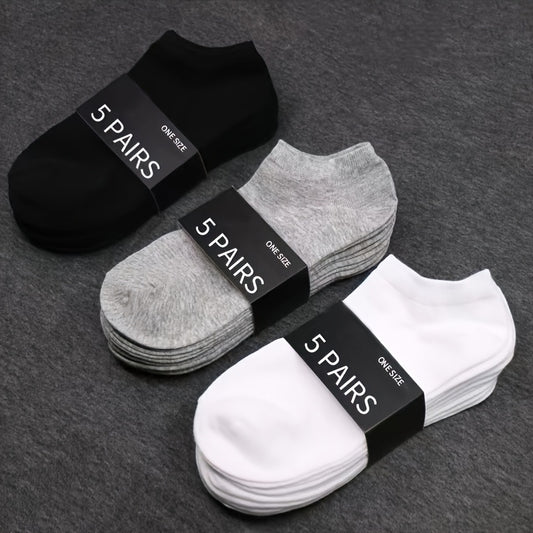 5 Pairs Ultra-Comfortable Low-Cut Ankle Socks - Breathable, Stretchy, and Durable for Sports & Casual Attire - Solid Black, Gray, and White, Sports Socks, Versatile Sock Options, Simple Sock Design, Breathable Fabric
