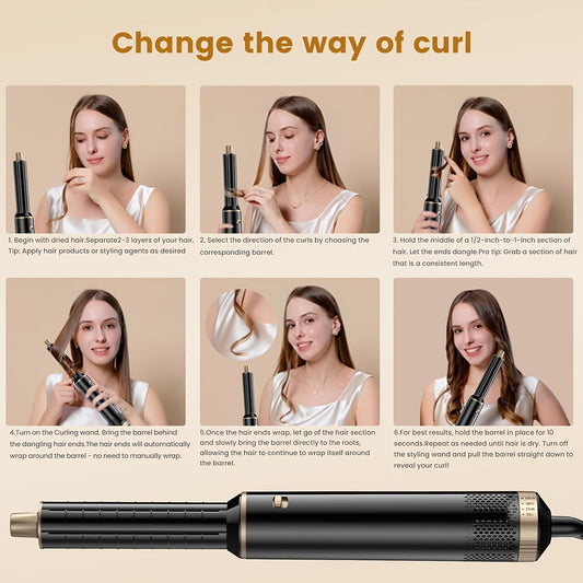 5-In-1 Hot Air Styling Brush with an Upgraded Detachable Design, Featuring a Hair Curler And a 1000W Hot Air Curling Wand, Equipped with an EU Plug.