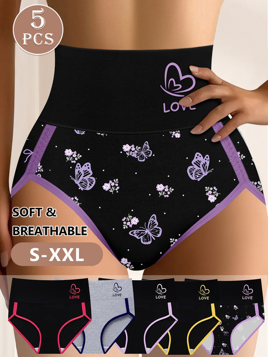 5-Pack Women's High Waist Briefs - Color Block Design, Soft Comfortable Triangle Underwear with Multi-Color Options, Non-Transparent & Hand Wash Only for Everyday Elegant Wear