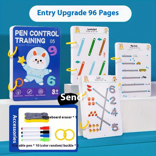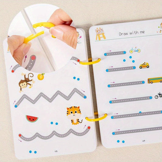 96-Page Reusable Magic Tracking Workbook for Kids, Drawing & Control Training, Bold Lines, Educational Diary, Notebook, Assorted Colors, Paper Material, Standard Size, Educational Toys & Games for Winter Ramadan Mubarak