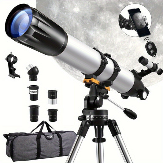 90mm Professional Astronomical Telescope, 90mm Objective Lens, 800mm Focal Length, 675x Magnification Moon Observing Telescope with Tripod - Suitable for Moon, Bird, Planetary Observation - Ideal Christmas And Birthday Gift