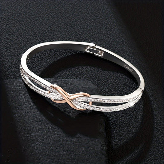 925 Sterling Silvery bracelet, with rose Golden infinity knot and cubic Synthetic Men's bracelet, anniversary and gift jewelry, Beige-friendly, weightless, holiday gift, Halloween, Christmas, comes with exquisite gift box, Sp