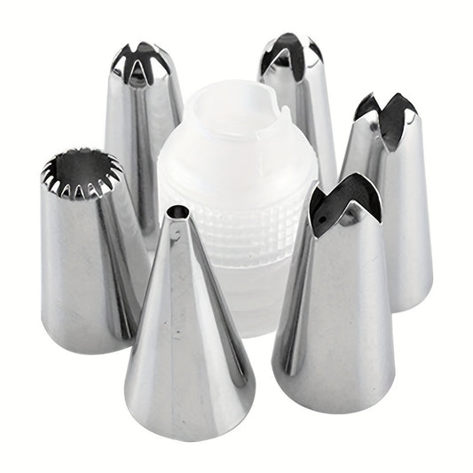 8pcs, Cake Decorating Tool Kit, Including 1pc Silicone Reusable Pipping Bag, 6pcs Pipping Tips, And 1pc Coupler, For DIY Cake Decorations, Baking Tools, Kitchen Gadgets, Kitchen Accessories, Home Kitchen Items