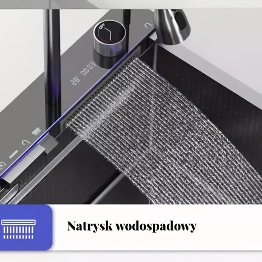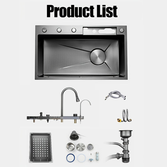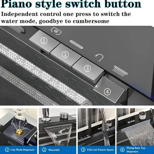 A Single-bowl Design Named 'Whale Rainfall Kitchen Sink' For Halloween And Christmas, Crafted From 304 Nanometre Stainless Steel. Features A Digital Display And Embossed Texture, Complete With Tap. Drainage Outlet Positioned