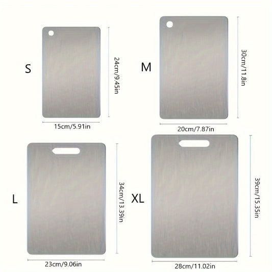 A Set of 1 Mini/Small/Medium/Large Stainless Steel Cutting Boards, Suitable for Home Kitchens And Convenient for Camping. These Durable And Corrosion-Resistant Boards Are Useful Kitchen Tools And Accessories.