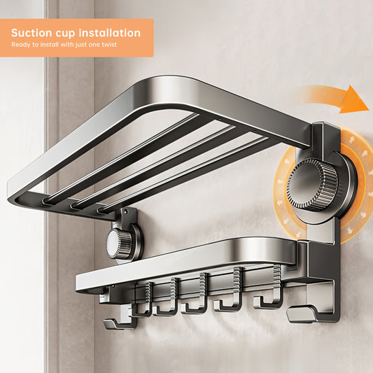 A Multifunctional Foldable Towel Rack with 1 Suction Cup, Including 2 Bases And 7 Hooks, a Space-Saving Towel Storage Rack, Suitable for Bathrooms And Balconies, Gray in Color, No Drilling Required to Change Its Position, Tow