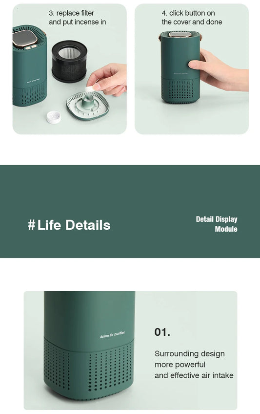 A52Q-Air Purifier With HEPA Filter Quiet Operation For Home,Office Includes Aromatherapy Feature