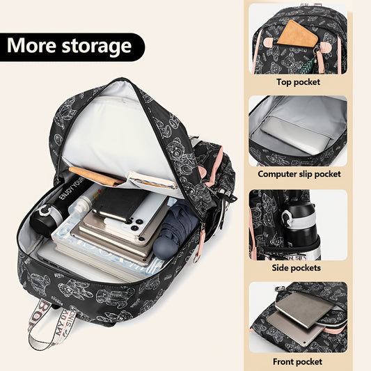 A set of youth vintage printed fashion backpacks, suitable for girls' campus commuting, travel backpack with a capacity of about 25 liters (height about 46cm), can hold a laptop, and the print position is random