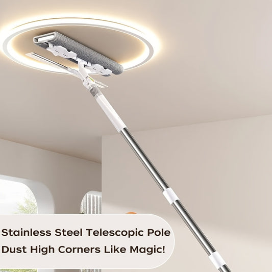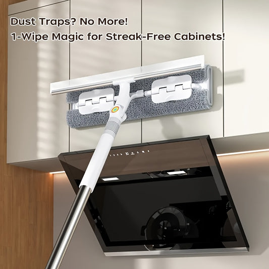 134.37cm Lengthen Microfiber Cleaning Tool, 360° Spin Flat Dust Tools, Dual-Use Dry and Wet, Stainless Steel Handle, Plastic Head, Efficient Glass Cleaner, Window Cleaning Tools, for Bathroom Doors, Windows, Floor and Car Us