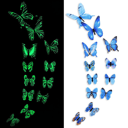12pcs Luminous Butterfly Wall Decals, Contemporary Style 3D Glow in the Dark Stickers, Reusable High-Glossy Plastic Animal Theme Irregular Shape for Living Room Bedroom Home Decor, Butterfly Decorations