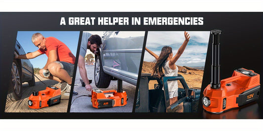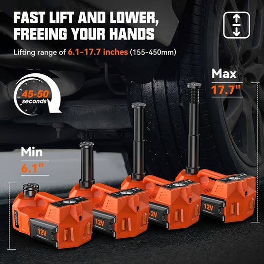 12V 5T Heavy-Duty Hydraulic Jack (15.5-45cm Lift) with Air Compressor & LED Light | Cordless Auto Lifting System for Car, SUV, Truck Tyre Change, Garage Repair