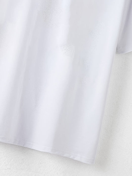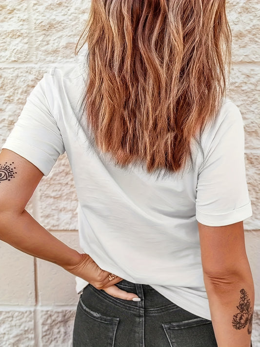 Dandelion Print Button Decor T-Shirt, Casual Crew Neck Short Sleeve T-Shirt For Spring & Summer, Women's Clothing