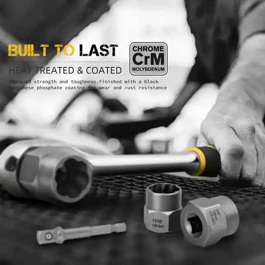 14pcs Damaged Lmpact Socket Set, Socket Set Nut And BoltExtractor Lmpact Bolt & Nut Remover-Chrome MolybdenumSteel Bolt Extractors With Storage Box
