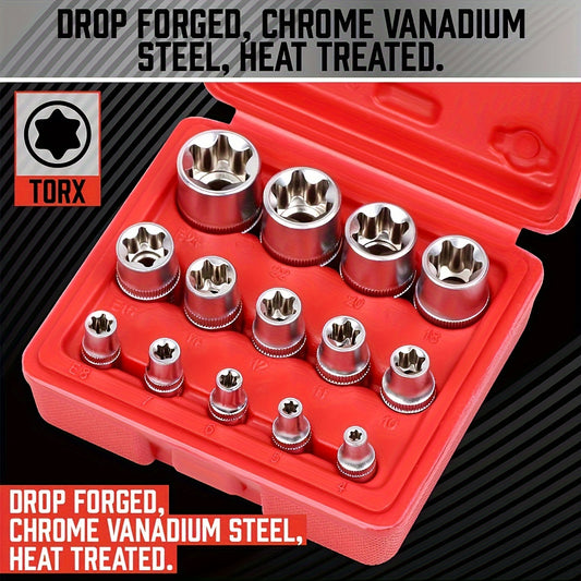 14pcs Hexagon Flower Key Star Type Socket Combination Auto Repair Tool Torx Type Socket