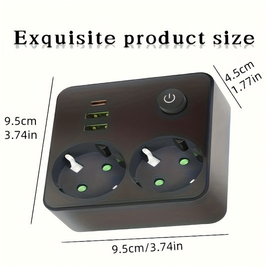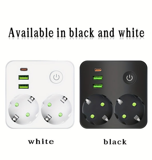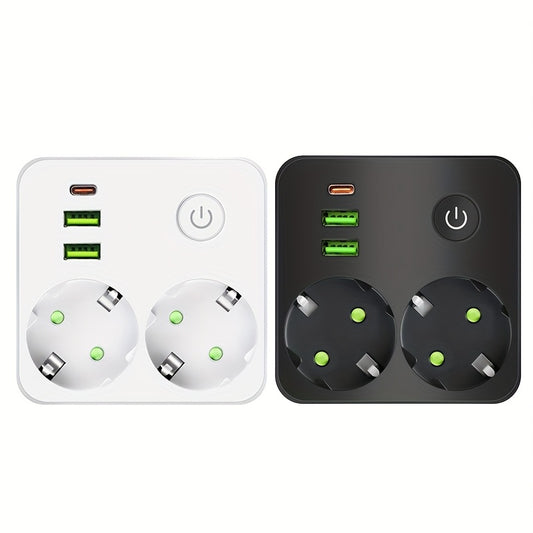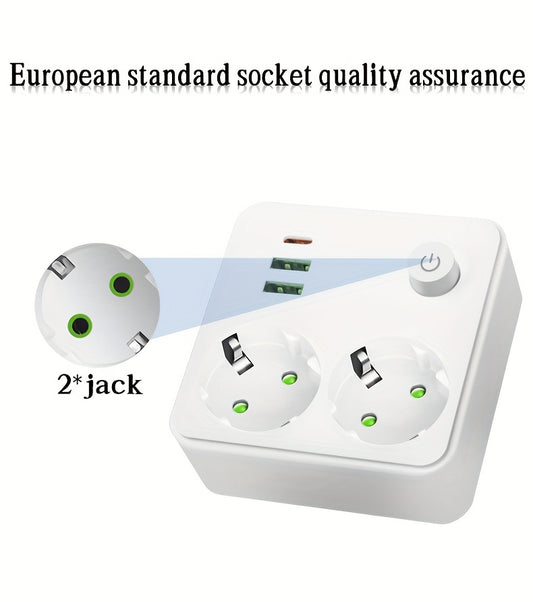 European Plug USB Adapter with 2 USB Ports, 1 C-Shaped Independent Switch, No-Blocking Compact Design, 10A 2500W, Suitable for Home Office Kitchen, Modern Plug Design, Durable Power Outlet