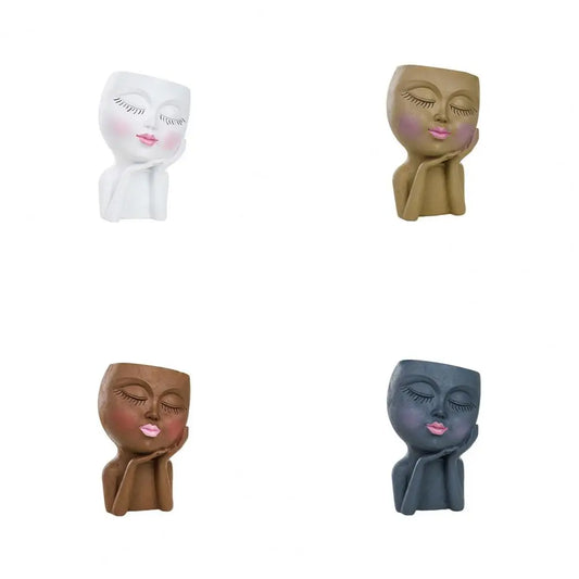 Face Flower Pot Sleeping Beauty Smooth Edge Human Head Planter Decorative Artistic Resin Drainage Plant Pot For Garden