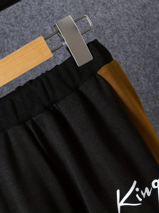 European and American Children's Clothing Boy's Long Pants Suit Medium and Large Children's Printed Letter King Contrast Color Sweatshirt and Long Pants Suit