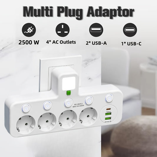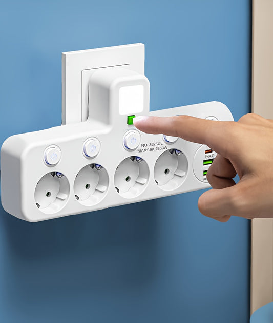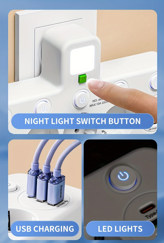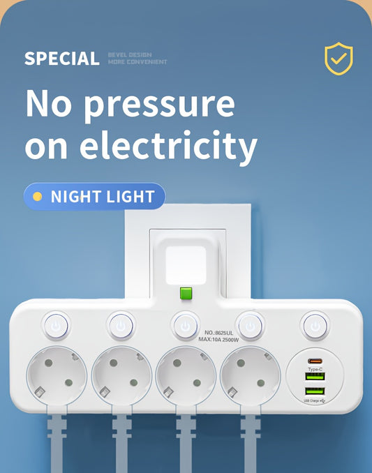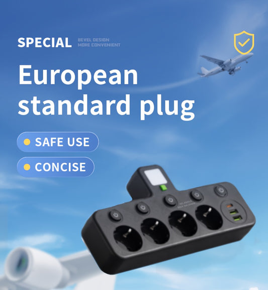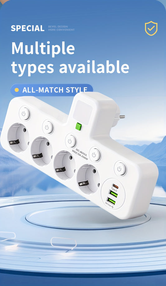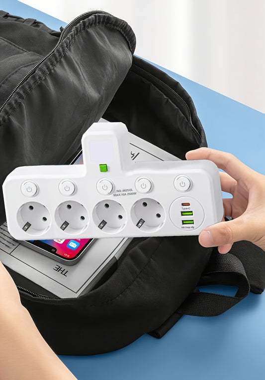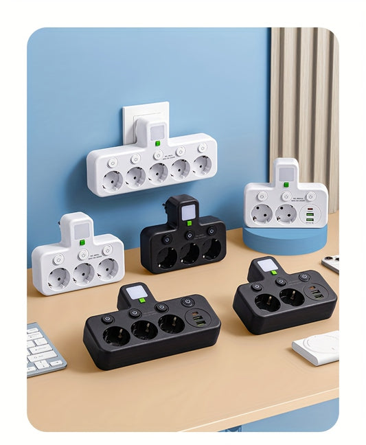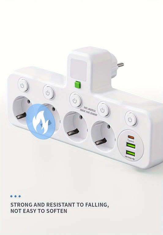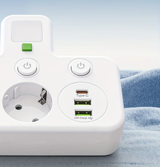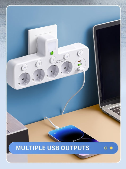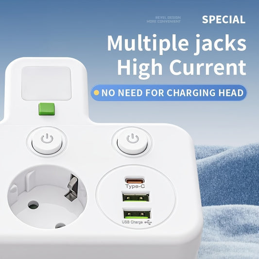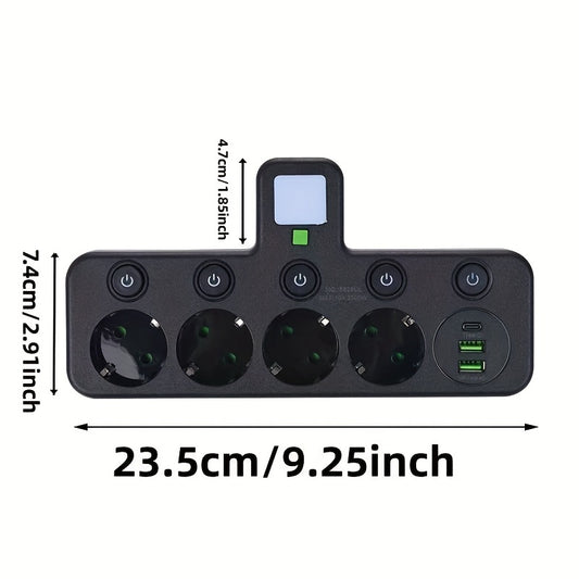 Five-in-One European Standard Multi-Function Socket with 2 USB Charging Ports and 1 Type-C Port, 4 Power Outlet Expansion Ports, Suitable for Home, Office, Dormitory, etc, Extension Cord With Multiple Outlets, Outlet And Swit