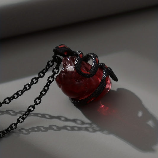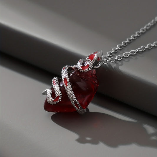 Gothic Snake Wrapped Resin Heart Decor Clavicle Chain Dark Style Pendant Necklace Y2K Necklace Jewelry For Women