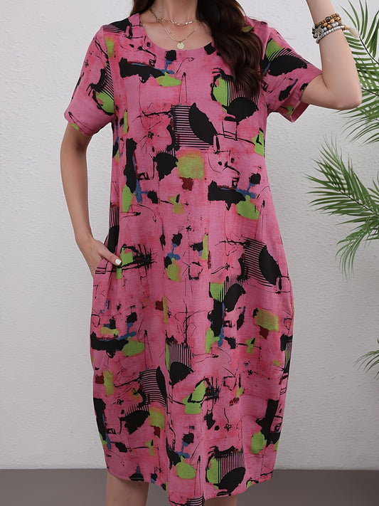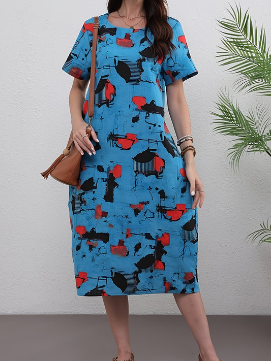 Graphic Print Tie Neck Blouse, Elegant Sleeveless Blouse For Spring & Summer, Women's Clothing