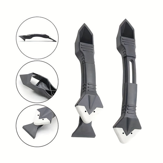 GOXAWEE 5-in-1 Silicone Caulking Tools, Sealant Finishing Tool Grout Remove Scraper With Stainless Steel Head, Caulk Remover Glass Glue Angle Scraper Including 5pcs Reuse And Replace Silicone Pads For Bathroom, Floor, Sink Jo