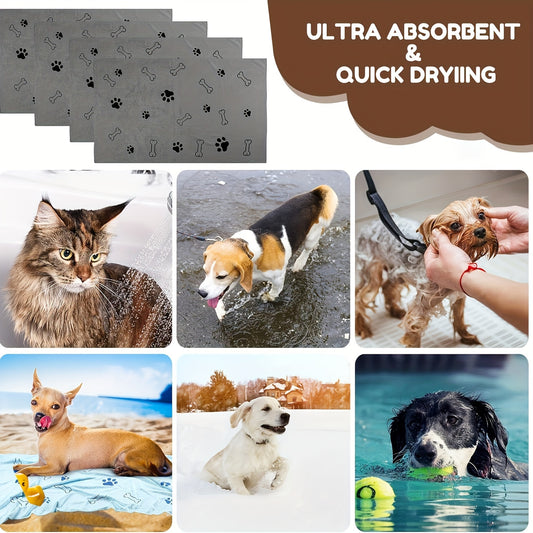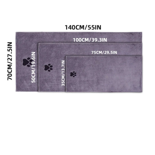 Superabsorbent Microfiber Dog Towel - Quick-Drying, Soft Pet Bath And Grooming Cloth for Medium to Large Breeds - Grey