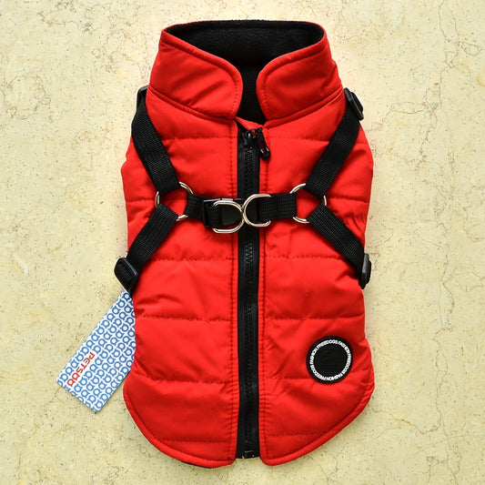 Warm Padded Dog Vest with Harness for Small and Medium Dogs - Red Coat for Extra Comfort and Security Christmas Gift
