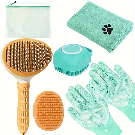 6pcs Pet Grooming Set for Dogs, Soft Bristle Brush, Massage Brush, Cleaning Gloves, Towel, and Storage Bag, Plastic Grooming Tools, with Uncharged for Pet Care Kit