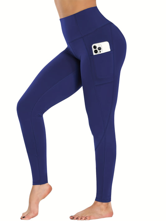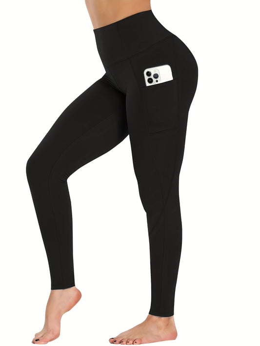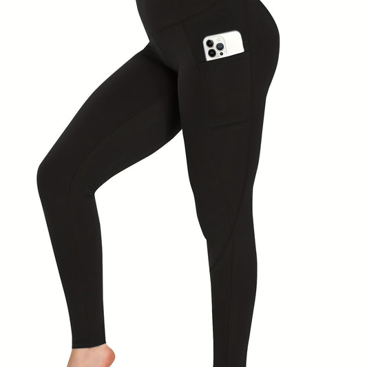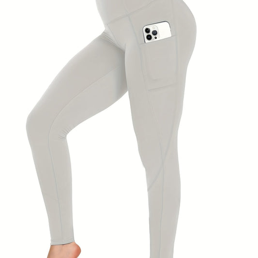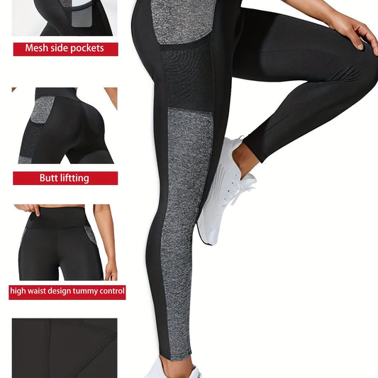 Women'S Plus Size High-Waisted Yoga Leggings with Pockets - Stretchy, Non-Sheer, Color-Block Design, Effect, All-Season Activewear, Casual Wear|Sporty Look|Stretchy Fabric