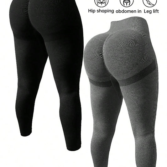 2-Pack Plus Size High-Waisted Butt Lifting Fitness Pants, Women's High Elasticity Quick-Dry Tight-Fit Sports Running Yoga Long Trousers
