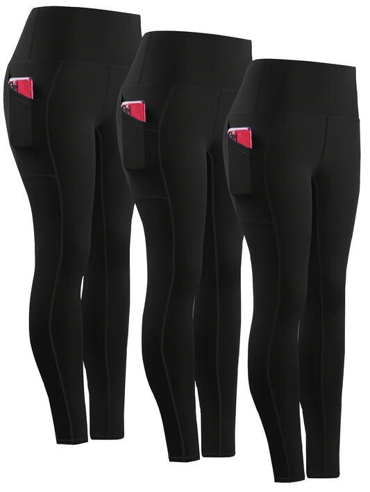 SOYUN Women'S High-Waisted Yoga Leggings with Pockets - Tummy Control Butt Lifting Design, Medium-Stretch Solid Color Workout Pants for Cycling, Running, Gym & Yoga - All-Season Comfort, No Belt Needed, Yoga Pants, Fitness Ap