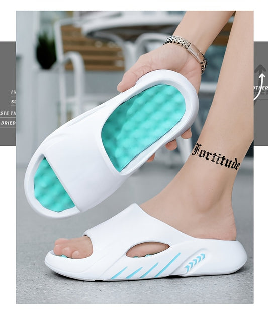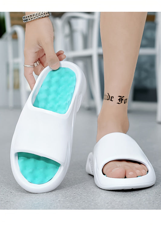 Unisex 1 Pair EVA Slides for Women - 2024 Fashionable Massage Insole Slippers, Non-Slip, Odor-Resistant, Indoor/Outdoor, Beach, Sports, One-Strap Sandals, All-Season, Solid Color