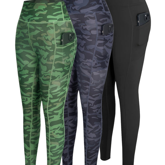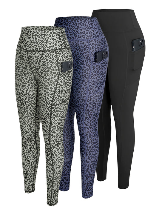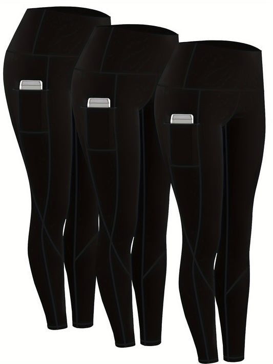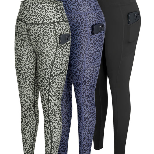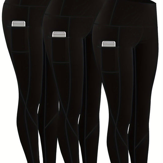 3-Pack Women'S High-Waisted Yoga Pants with Side Pockets - Non-Slip Grip, Stretchy Workout Leggings for Gym, Running, Everyday - All-Season Fitness Pants in Black/Gray/ - Ideal for Yoga, Pilates, Casual Attire, Yoga Leggings,