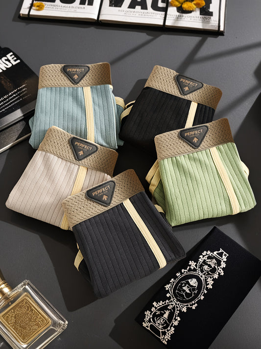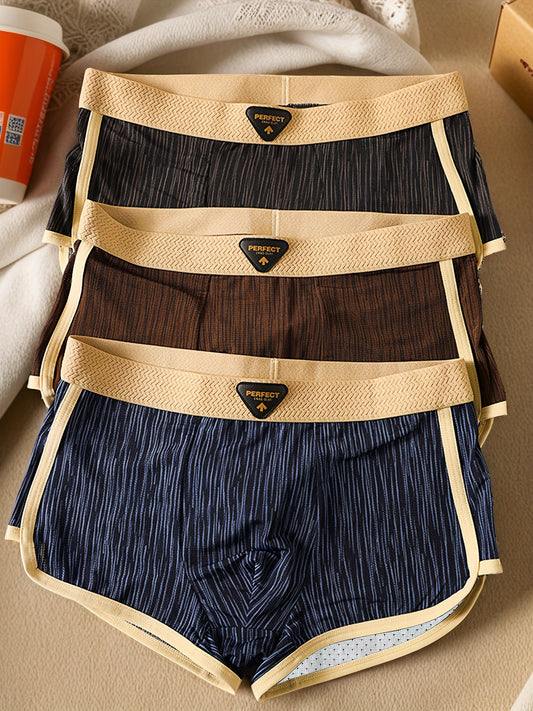 3pcs Men'S Boxer Briefs - Breathable, Comfortable, Stretchy Ribbed Striped Underwear in, Green, and, Perfect for Casual Attire or Sports, Comfortable Underwear | Ribbed Texture | Medium Elasticity