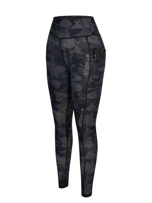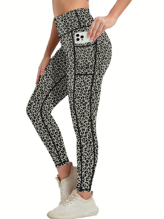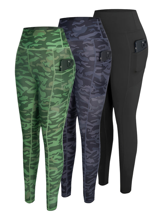 3pcs Set Women'S Plus Size Daily Sports Yoga Leggings, Geometric Pattern, High Stretch Spandex, Breathable, with Two Side Pockets, for Running, Workout
