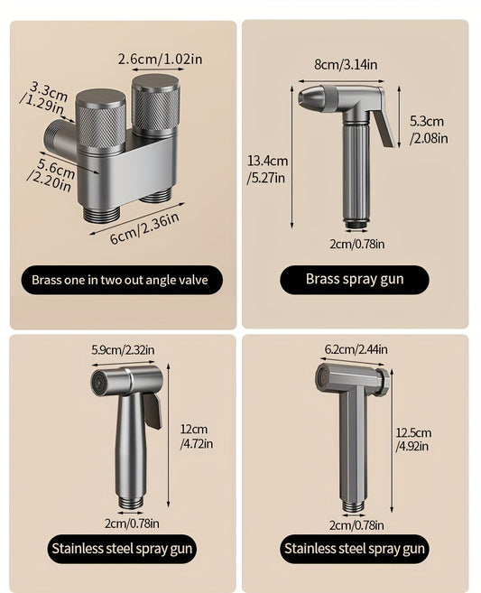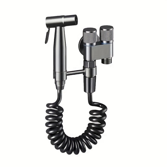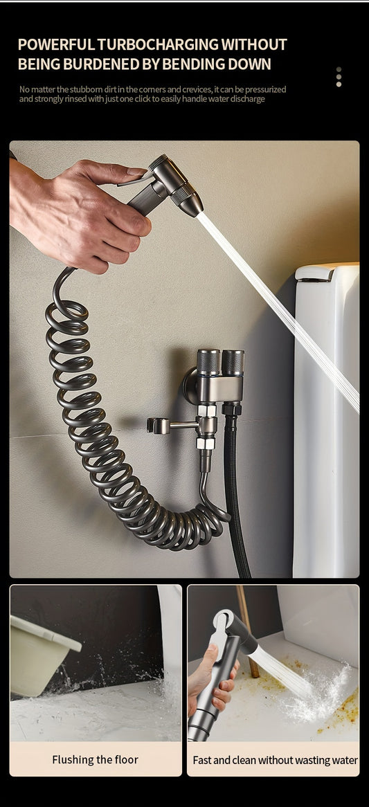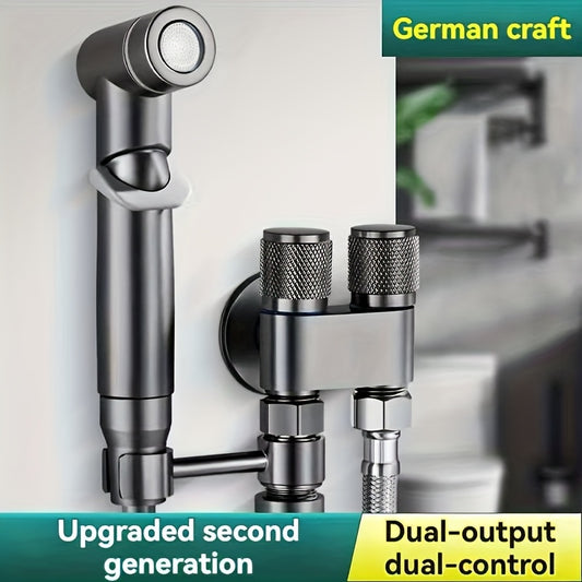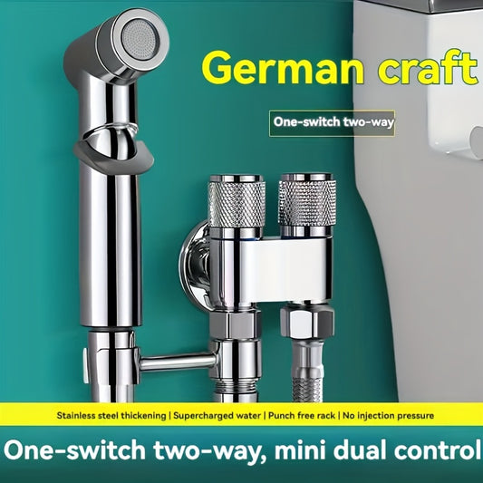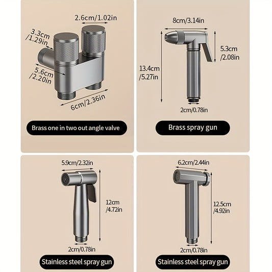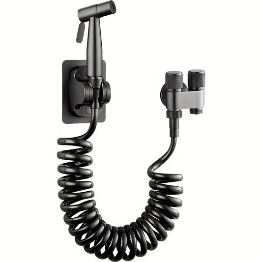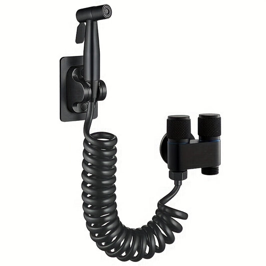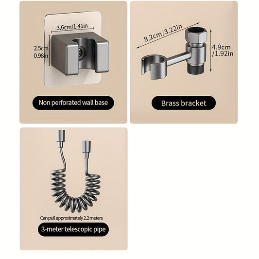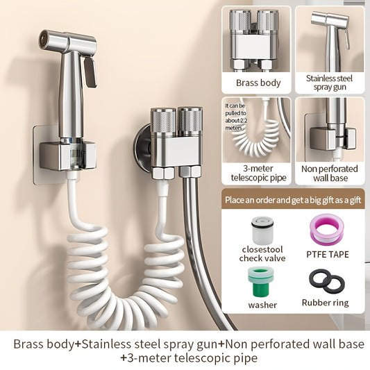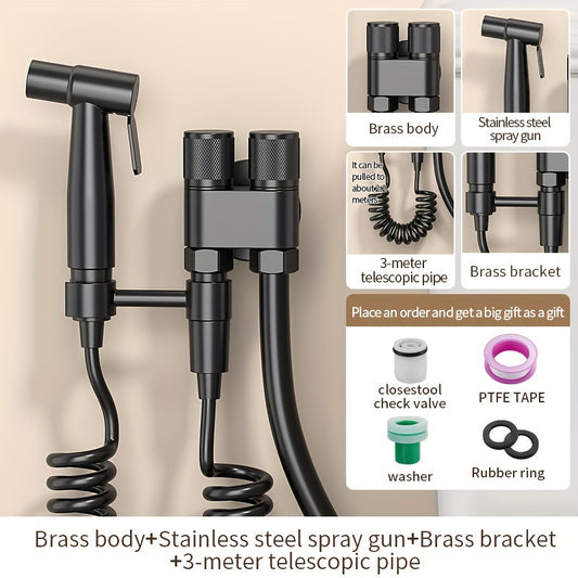 A Handheld Bathroom Cleaning Kit Equipped With A Dual-mode Spray Gun And Extendable Hose, With A Diverter And Wall Bracket, Used For Toilet Flushing, Multifunctional Bathroom Spraying, And One In Two Out Control Valve