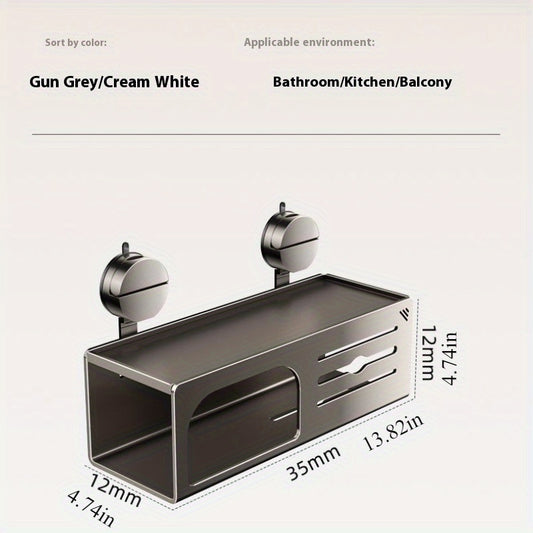 1pc Heavy-Duty Rustproof Shower Organizer - Bathroom Shelf with Towel Hooks, Space-Saving Bathroom Storage, No-Drill Installation, for Bathroom, Shower, or Kitchen - Modern Bathroom Decor, Shower Shelves, Contemporary Design,