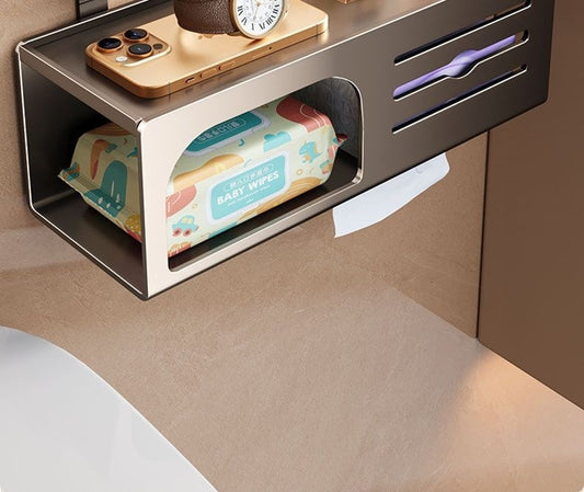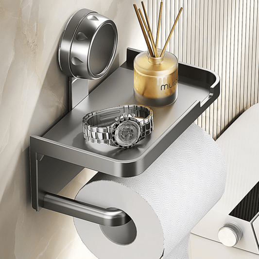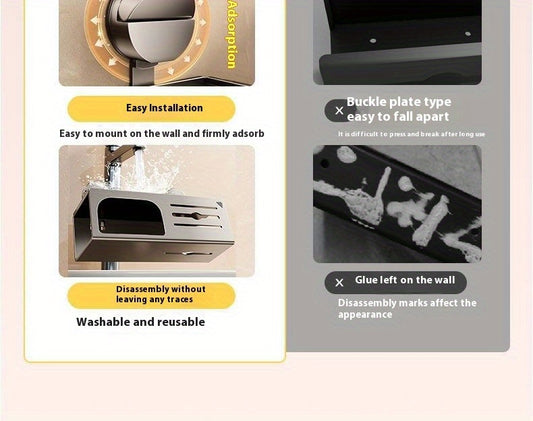 1pc Household Toilet Paper Holder with Storage Box, Suction Cup Wall-Mounted Bathroom Tissue Rack – No Drilling Required. Includes Phone Stand for Convenient Use in the Home or Shower Room, Toilet Tissue Holder for Bathroom