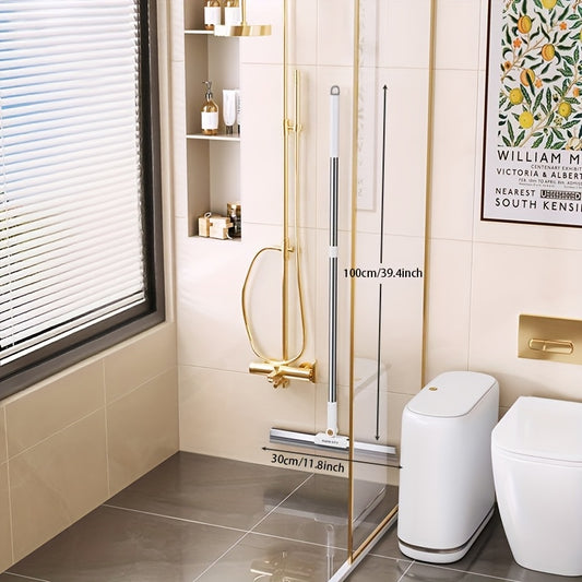 30cm/11.8inch All-in-One TPR Squeegee, Magic Broom with Comb Teeth, Stainless Steel/TPR Multi-Surface Floor, Window, Bathroom Cleaner - Effortless Water, Dust, Pet Hair Removal for Hardwood, Tile, Glass, Kitchen - Space-Savin