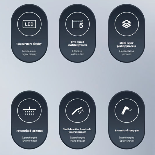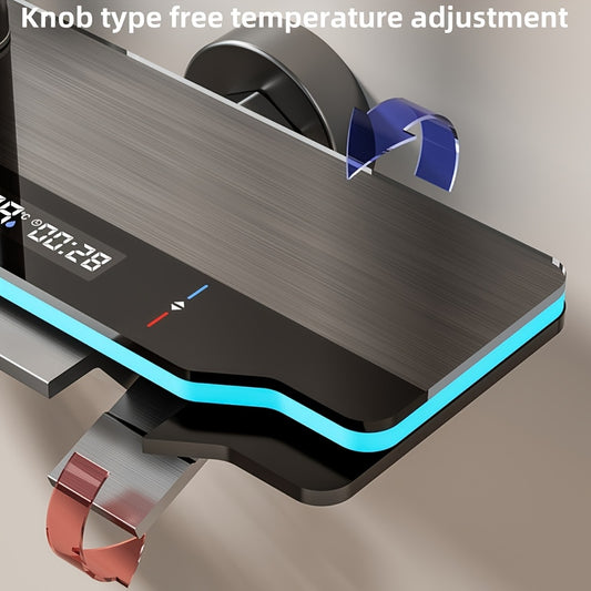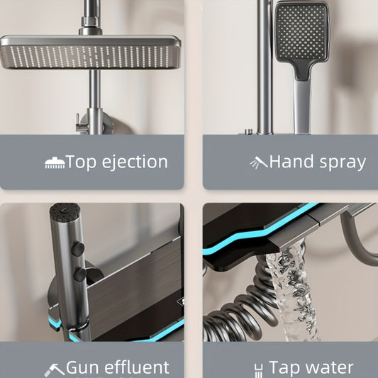 A Set of Piano Key Digital Display Shower System, Five Water Outlet Modes, Built-In Ambient Lighting, Hydropower Generation, All-Copper Body, Extra-Large Display Screen, 2025 Latest Model.