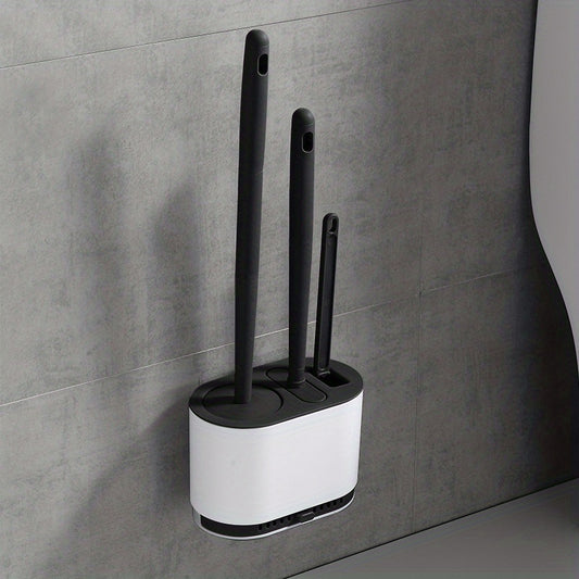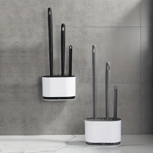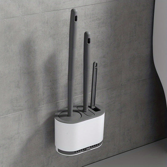 360° Silicone TPR Toilet Brush And Holder Set, Bathroom Cleaning Brush Kit with Wall Mount And Floor Standing Options, Interior Decoration-Compatible, Universal Brush Head Design RV Toilet Spare Parts