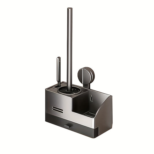 Vacuum Suction Cup Toilet Brush Wall-Mounted Set, 1 Style with 2 Options, Splashproof Base and Angled Head for Hard-to-Reach Areas - No Drilling Required Bathroom Storage Solution Universal Fit on Tiles & Glass