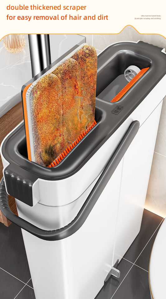 Gray Flat Mop + Narrow Slot Cleaning Bucket Set, Hand-free Lazy Mop Mover, Wet And Dry One Mop Cleaner, Household Cleaning Tool, Send Replacement Cloth, Suitable for Living Room, Bedroom, Kitchen, Bathroom, Toilet, Commercial