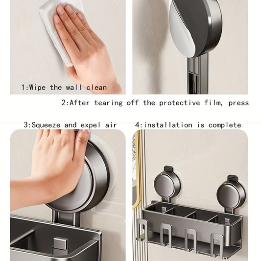 Bathroom Essentials Wall Mount Shower Caddy - No Drilling Required, Space-Saving Organizer for Toothbrushes, Dental Cup, Mouthwash, and Bathroom Accessories - Ideal for Home and Gift