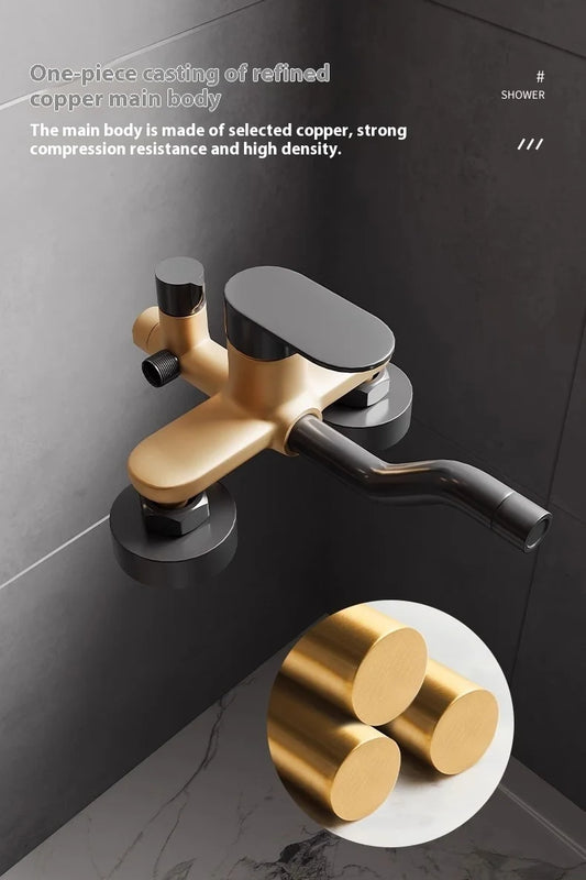 Cross-Border Household Toilet Large Waterfall Water Outlet ABS Chrome Soft Hot Cold Copper Brushed Gold Shower Suit Storage