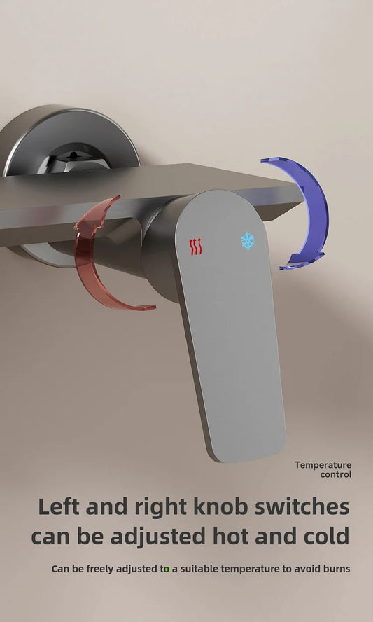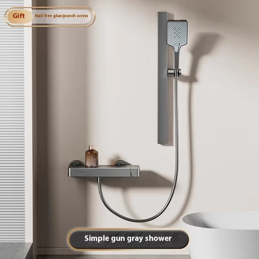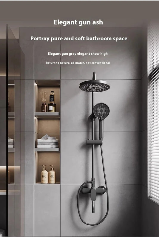 Gun Grey All-Copper Household Bathroom Shower Set Simple Design Ceramic Metered Faucets Chrome Shower Booster