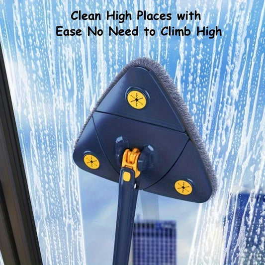 6pcs Triangle Wet and Dry Mop Set with 5 Microfiber Pads, 360° Rotating Stainless Steel Handle, Multi-Functional for Bathroom, Kitchen, Living Room - Ideal for Bathtub, Tile, Wall, and Glass Cleaning