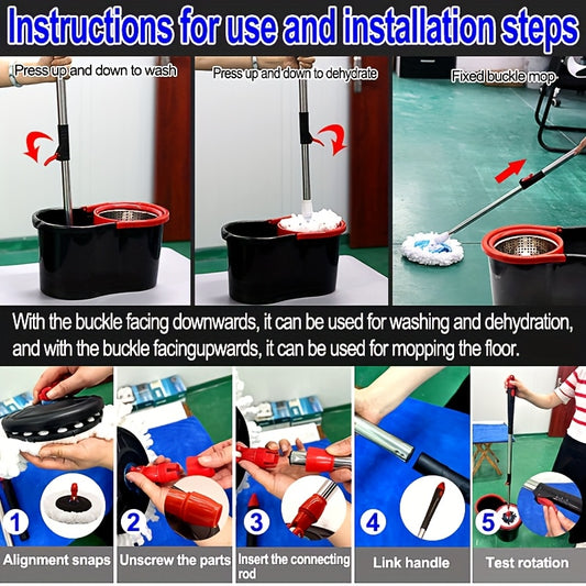 1 Set, Sewage Separation Hands-free Wash Mop And Bucket Set, With 2 Cloths, Household Rotating Floor Mop, Lazy Mop, Dust Removal Mop, Dry And Wet Use, Perfect For Home, Kitchen, Bathroom Floor, Cleaning Supplies, Cleaning Too