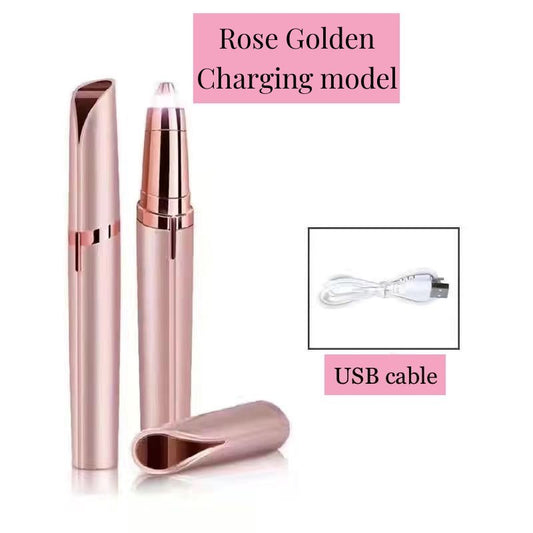 Eyebrow Hair Remover For Lip Nose Facial Hair Removal, USB Rechargeable Painless Precision Portable Electric Eyebrow Trimmer Pen With LED Light, Safe Eyebrow Shaver Razor Tool For Men And Women (Rose Golden) Father's Day Gift