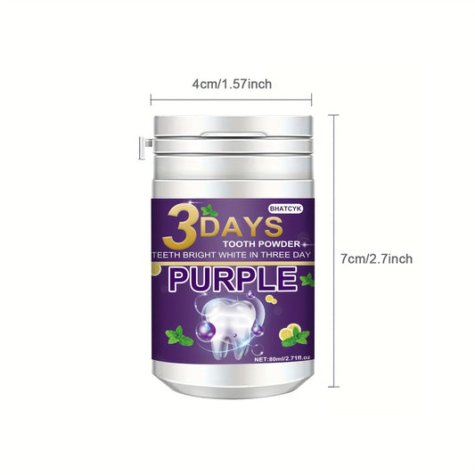 BHATCYK 3 Days Purple Teeth Whitening Powder, Fresh Mint Flavor, 80ml/2.71oz, Teeth Polishing and Deep Cleaning Powder for Brighter Smile, Suitable for Daily Use and Travel